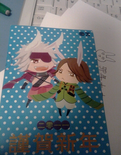 终于在思索的一天后回家开始了春节明信片,花了好久才除了一张草稿笑着的三成,其实画他笑脸的时候我心里特别毛otz 三成其实除了在猩猩和女王面前才会那么笑吧otz 捶地,